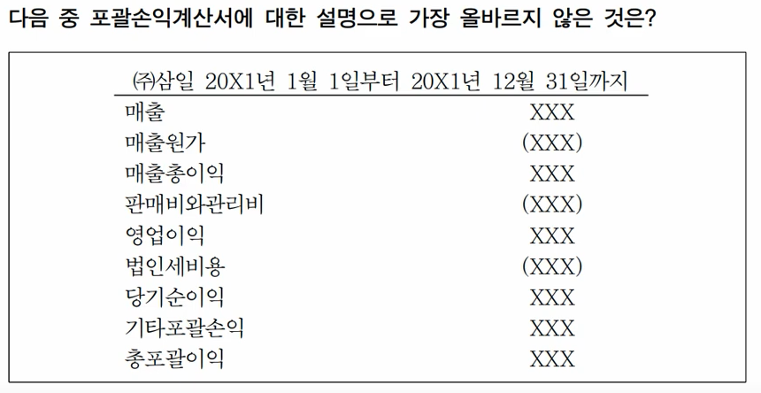 · 비용을 매출원가, 물류원가 등과 같이 매출원가를 다른 비용과 분리하여 공시하는 것이 특징