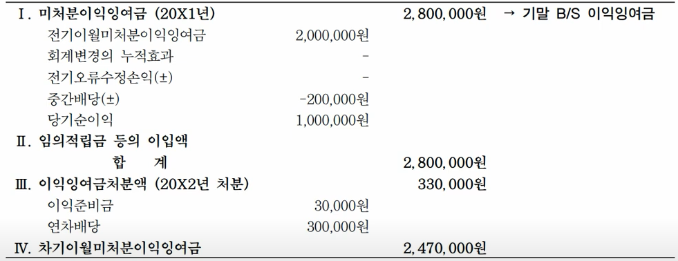 손익거래에 의하여 발생하는 이익(당기순이익)을 원천으로 한 이익 중 배당금의 형태로 사외유출되지 아니하고 사내에 유보된 금액 (손익에서 발생한 당기순이익이 자본계정에 계속 쌓이는 것)